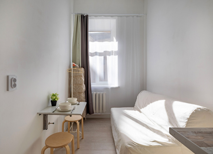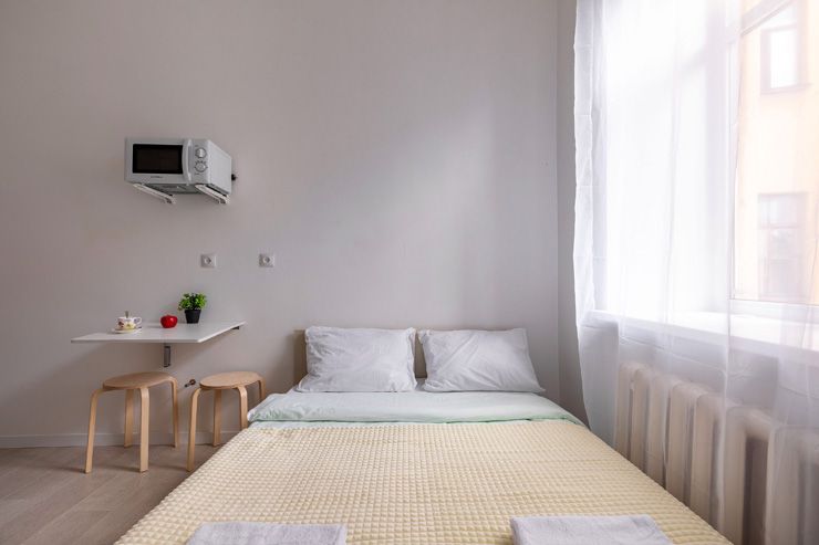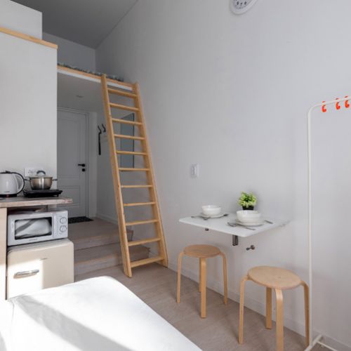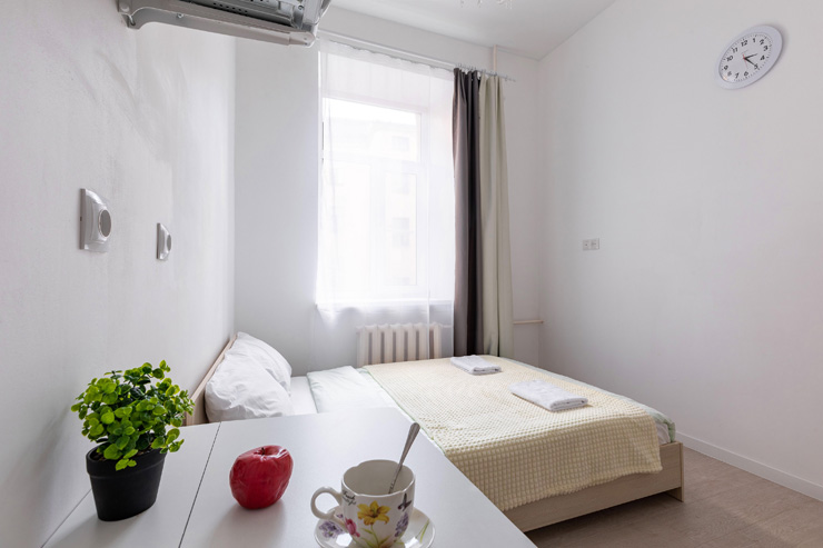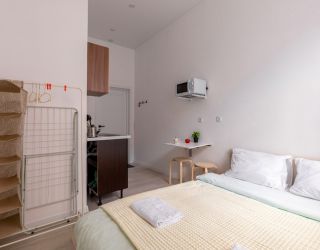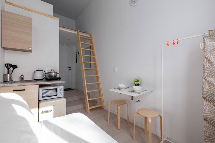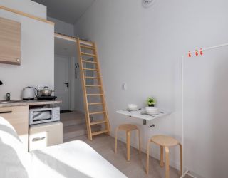Гости могут остановиться в одной из двухуровневых студий, оснащенной всем необходимым для комфортного отдыха –– удобное спальное место, небольшая зона отдыха, Wi Fi, холодильник, микроволновая печь, чайник и утюг.